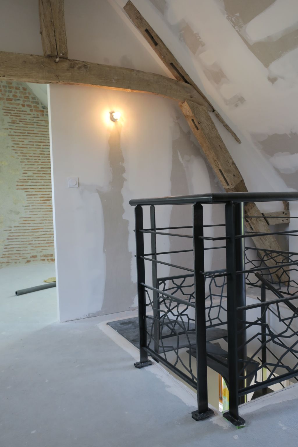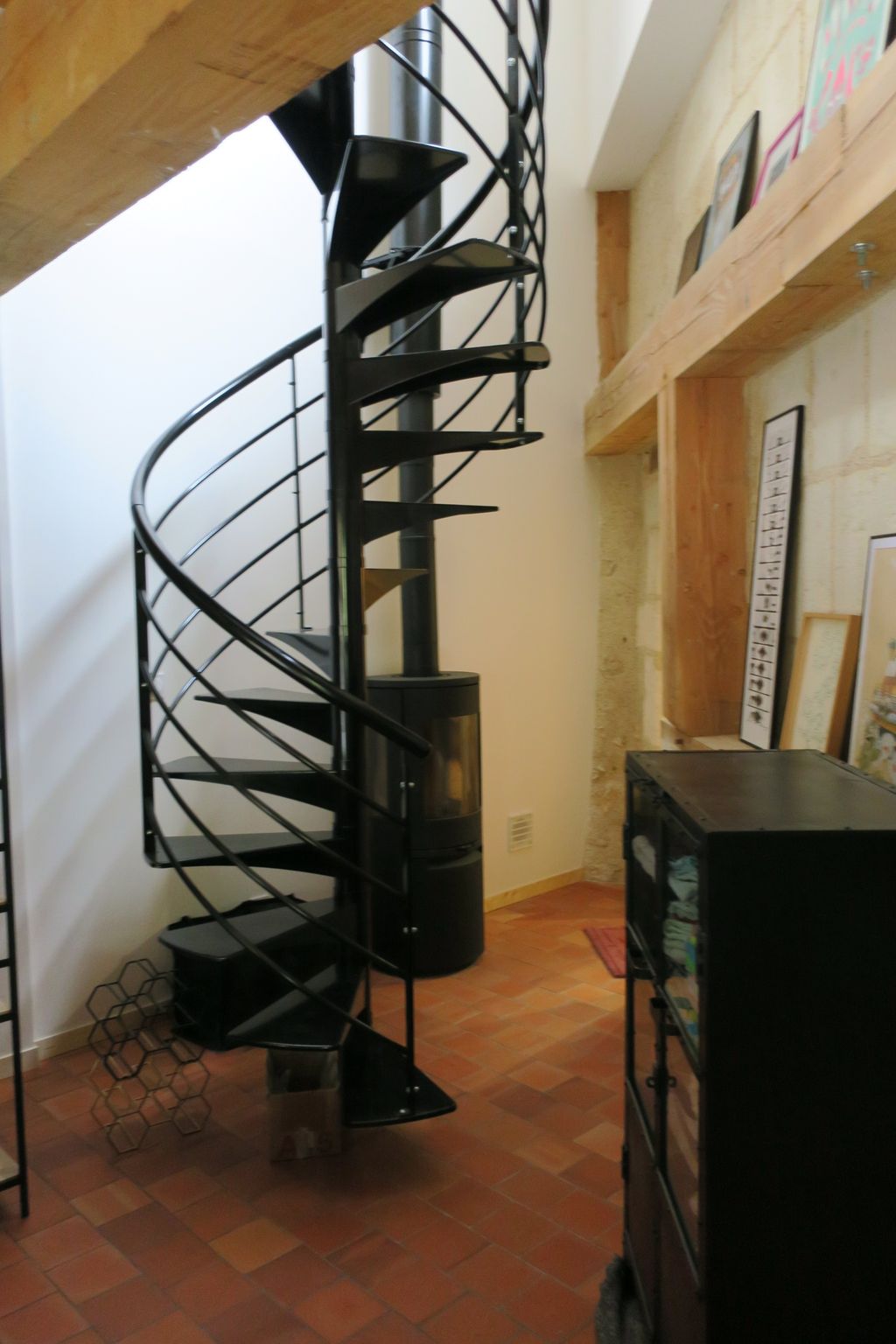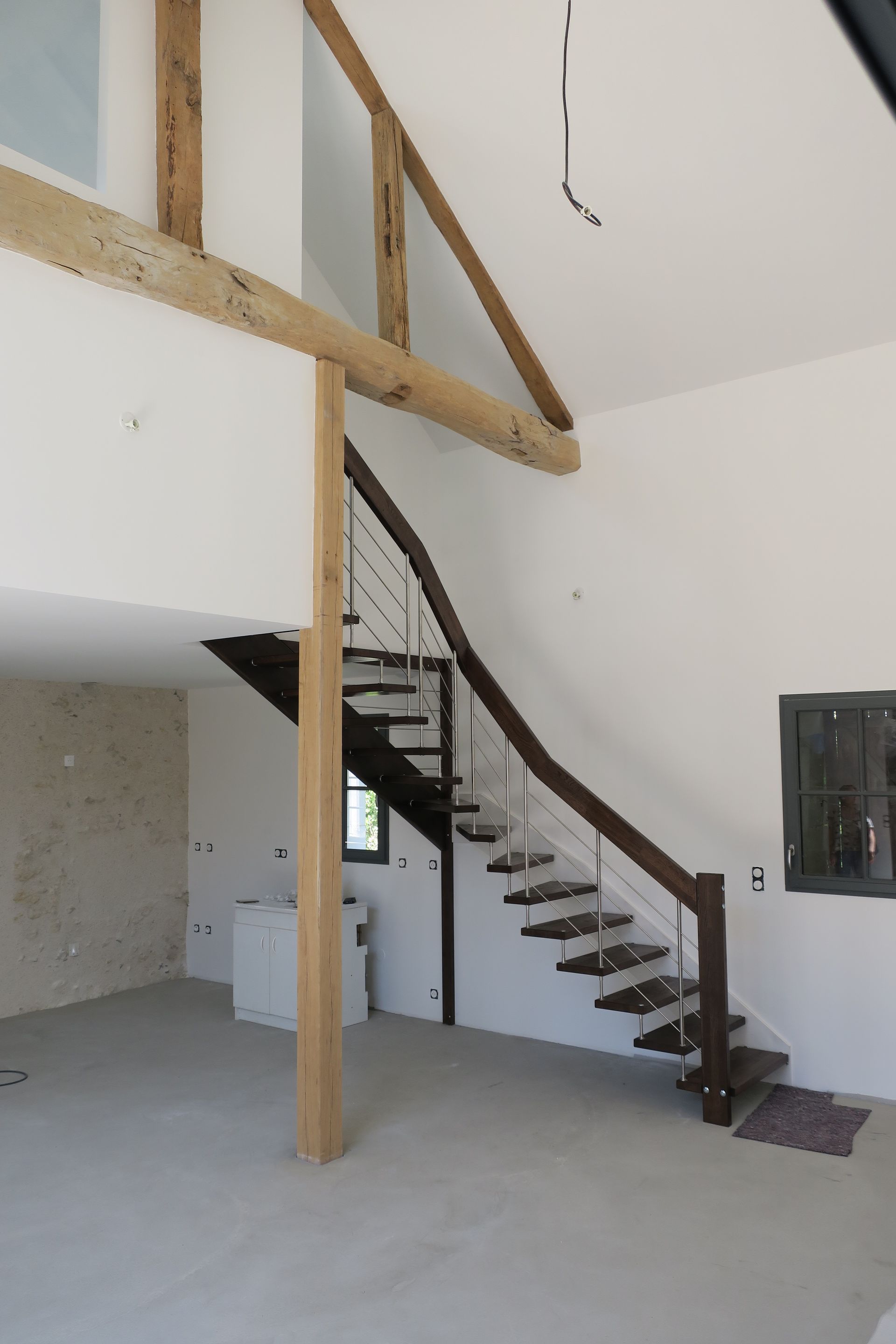 Vue de l'escalier et de la mezzanie depuis le séjour